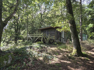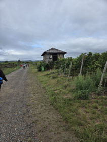 Vom Parkplatz ging es erst mal bergan über die Sülzbachtalbrücke neben der B 42 in die Weinberge. Vorbei am Kiddericher Hüttchen. Hier war eine kleine Pause, bevor es nach links vorbei am Weinberg der Ehe und zur Burg Scharfenstein ging.