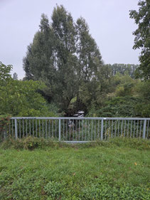 Es ging zum Kirchplatz, zum Alten Rathaus, weiter durch die Alte Königsteiner Straße, am Liederbach entlang, zum Kelkheimer Park "Sindlinger Wiesen", neuer Blickfang "ein Mühlrad" und weiter zu unserer 2002 gepflanzten "Sumpfeiche".