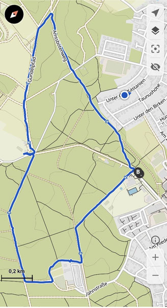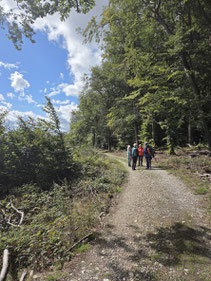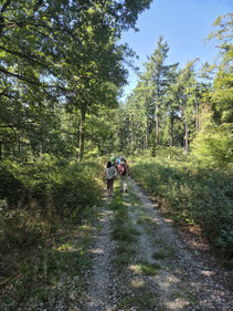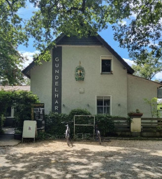 Es ging am Schwimmbad entlang in Richtung Wald, erstmal nach links und dann nach rechts, am Waldrand entlang bis zum Reitplatz. Von hier ging es dann rechts, immer stetig bergauf bis zum "Waldgasthof Gundelhard, im Herzen der Natur", hier war Einkehr.