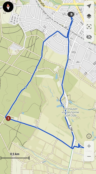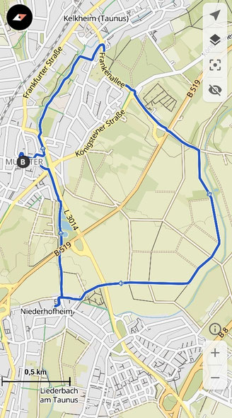 Es ging über die Bahngleise in Kelkheim-Münster, weiter den Hallwielweg bis zum Waldrand und zur Viehweide. Von hier ging es auf dem Weg von der Viehweide über die Reifenberger Straße zum "Hoffest Lindenhof".